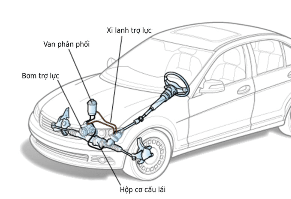 Cấu tạo hệ thống trợ lực lái thủy lực trên xe ô tô.